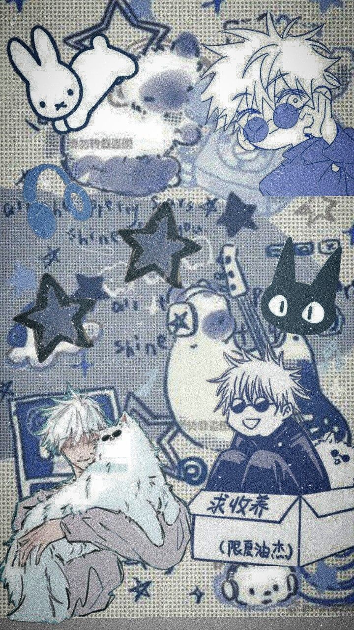 High-quality anime mobile wallpaper: anime characters with starry blue background. Perfect for your smartphone screen. Download Wallpapers