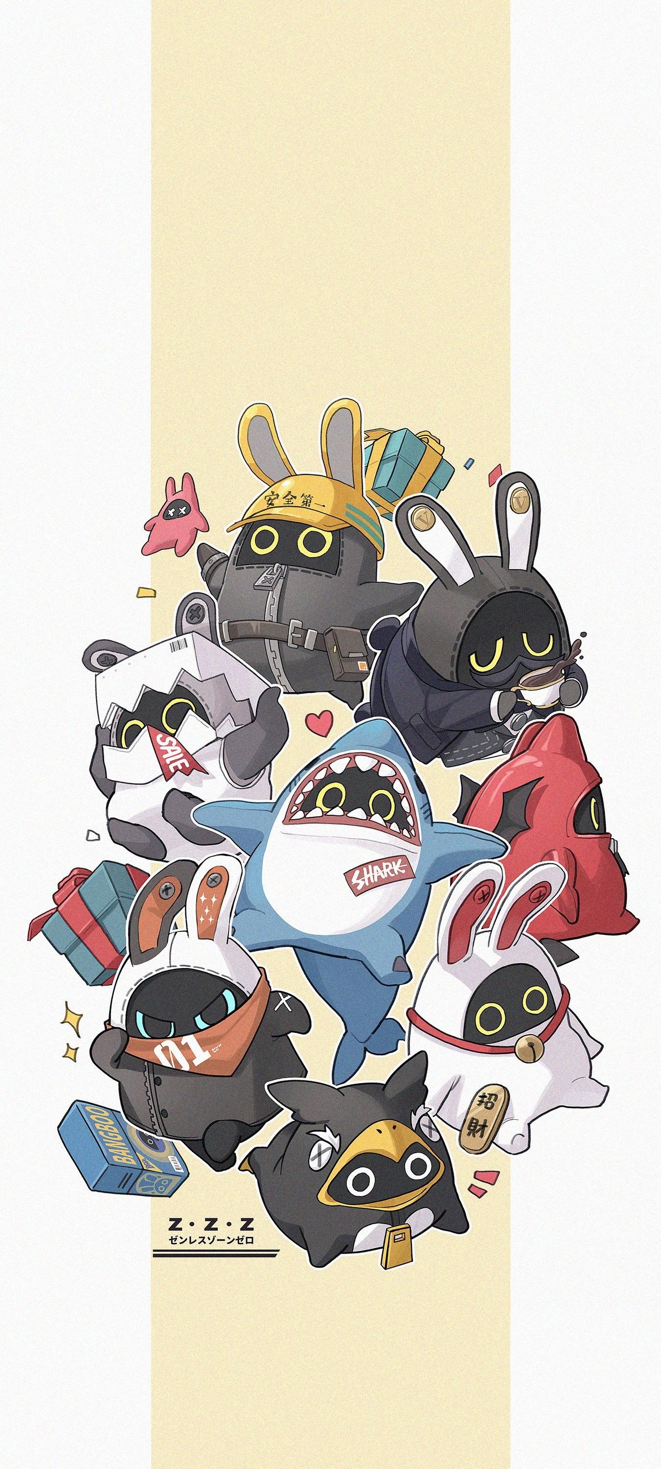 High-quality gaming mobile wallpaper: cartoon characters on striped background. Perfect for your smartphone screen. Download Wallpapers