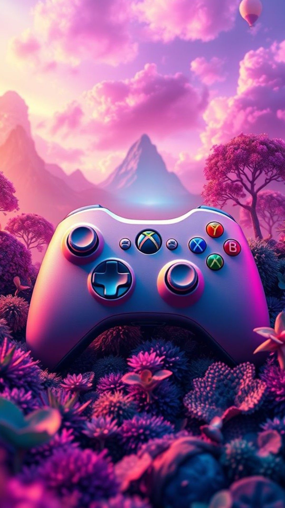High-quality gaming mobile wallpaper: controller in serene mountain field. Perfect for your smartphone screen. Download Wallpapers