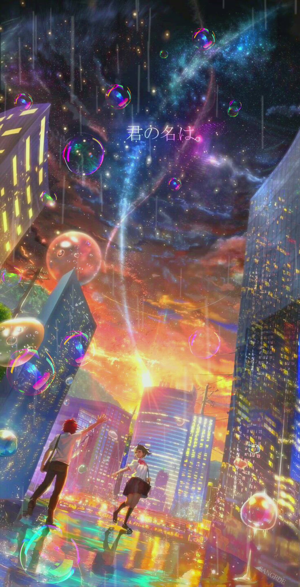 High-quality anime mobile wallpaper featuring duo in tranquil twilight glow. Perfect for smartphone screens. Download Wallpapers