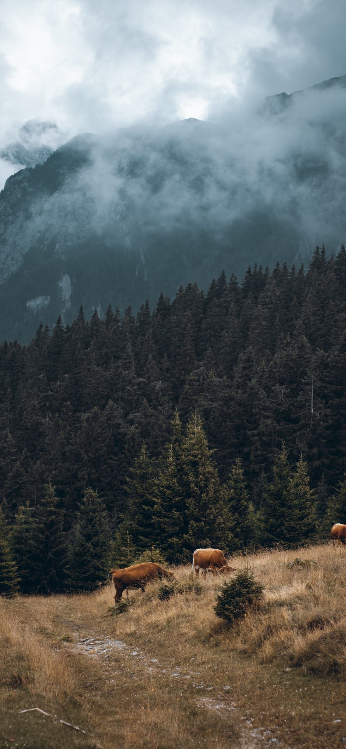 High-quality nature mobile wallpaper: grazing wildlife in mountain meadow. Perfect for your smartphone screen. Download Wallpapers