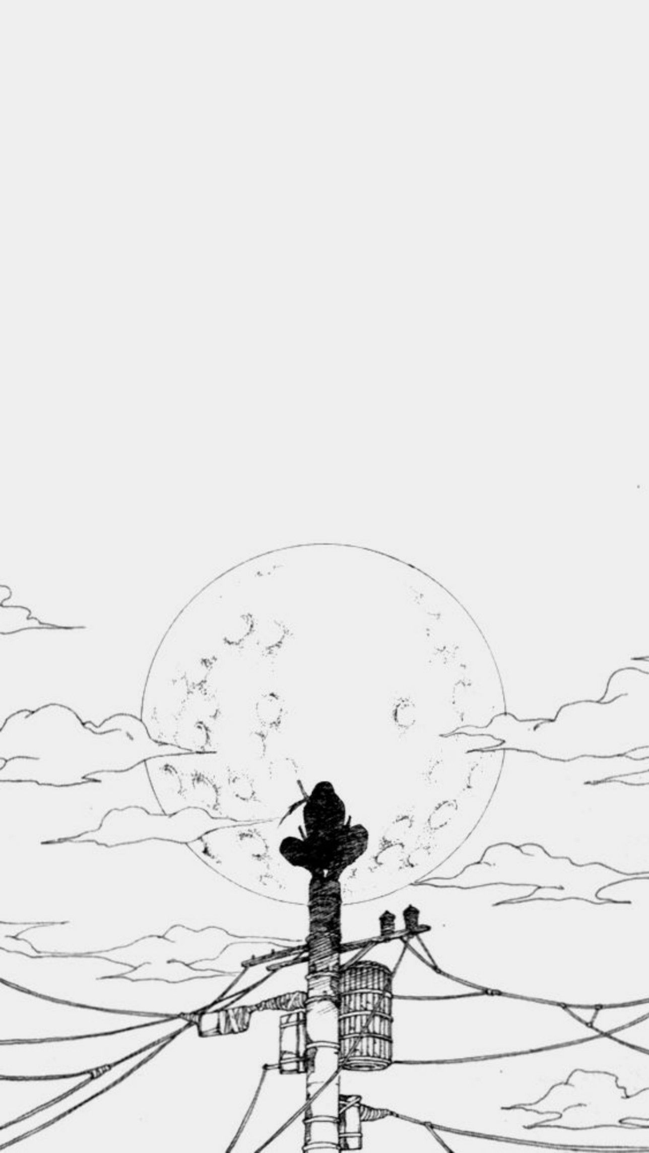 High-quality anime mobile wallpaper: monochrome powerline moon silhouette. Perfect for your smartphone screen. Download Wallpapers