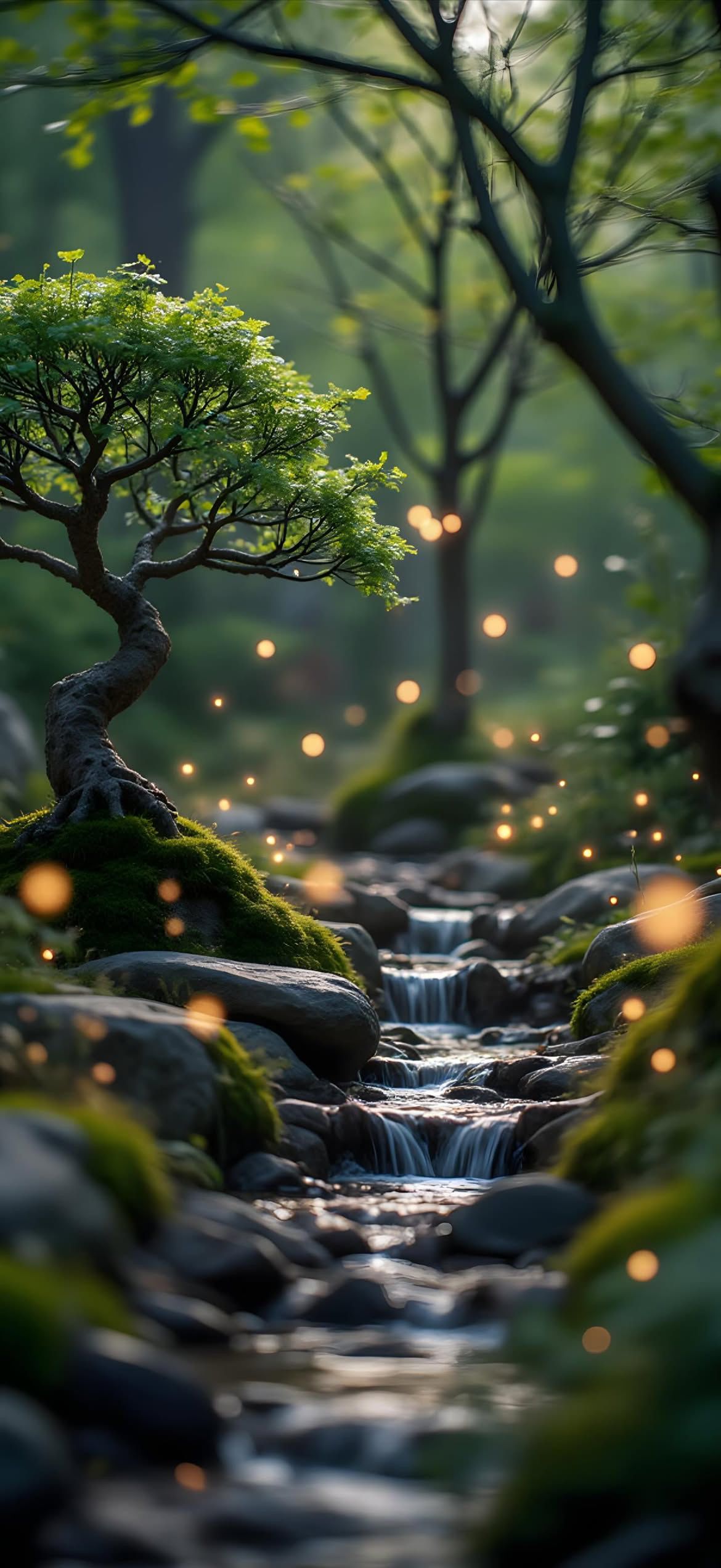 High-quality nature mobile wallpaper: mossy rock by river. Perfect for your smartphone screen. Download Wallpapers