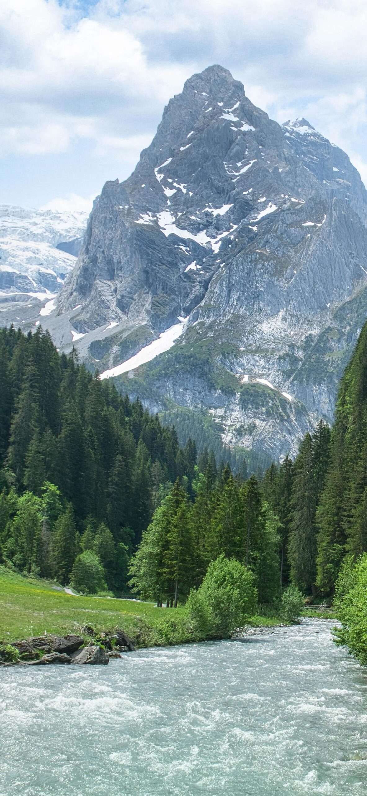 High-quality nature mobile wallpaper: mountain river in snowy forest. Perfect for your smartphone screen. Download Wallpapers