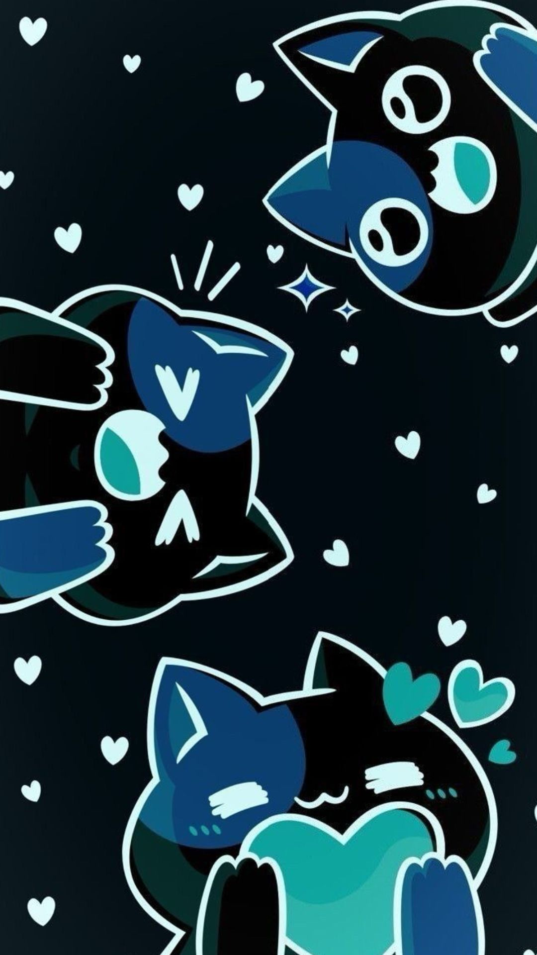 High-quality gaming mobile wallpaper: mystic feline blue hearts design. Perfect for your smartphone screen. Download Wallpapers