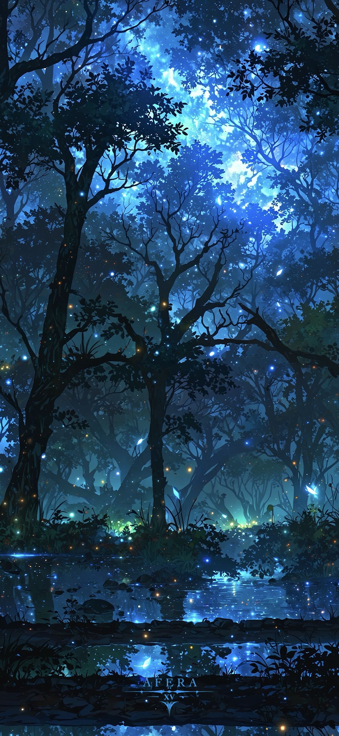 High-quality nature mobile wallpaper: mystical moonlit forest glow. Perfect for your smartphone screen. Download Wallpapers