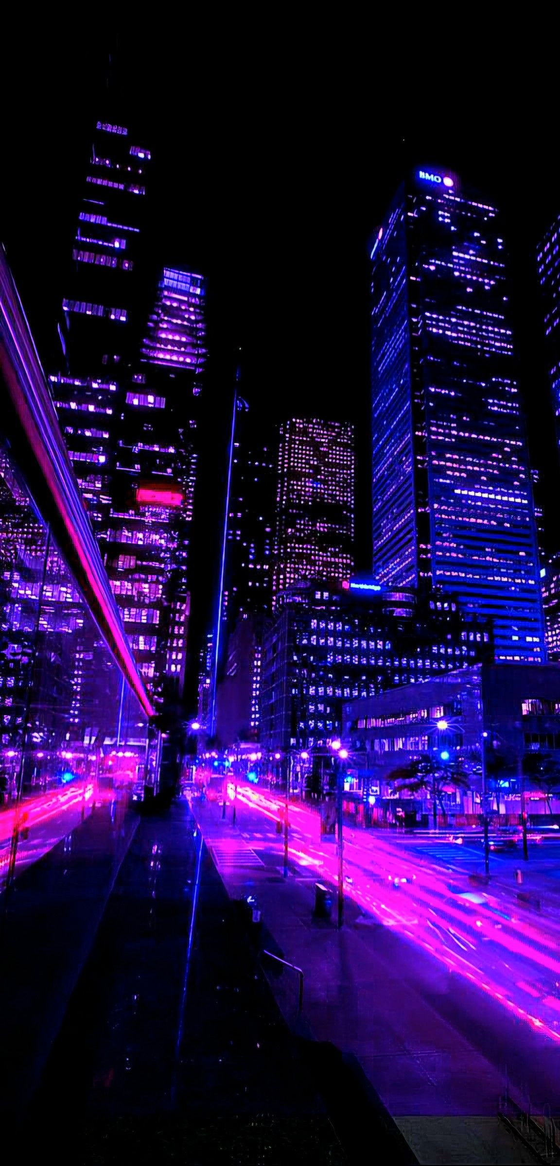 High-quality cyberpunk mobile wallpaper: neon city purple glow. Perfect for your smartphone screen. Download Wallpapers