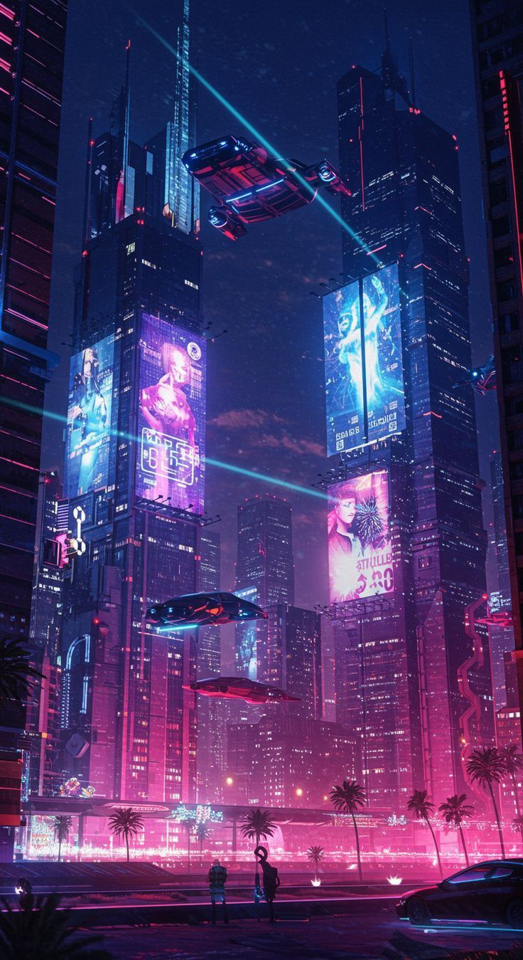 High-quality cyberpunk mobile wallpaper: neon cityscape with futuristic crowd. Perfect for your smartphone screen. Download Wallpapers