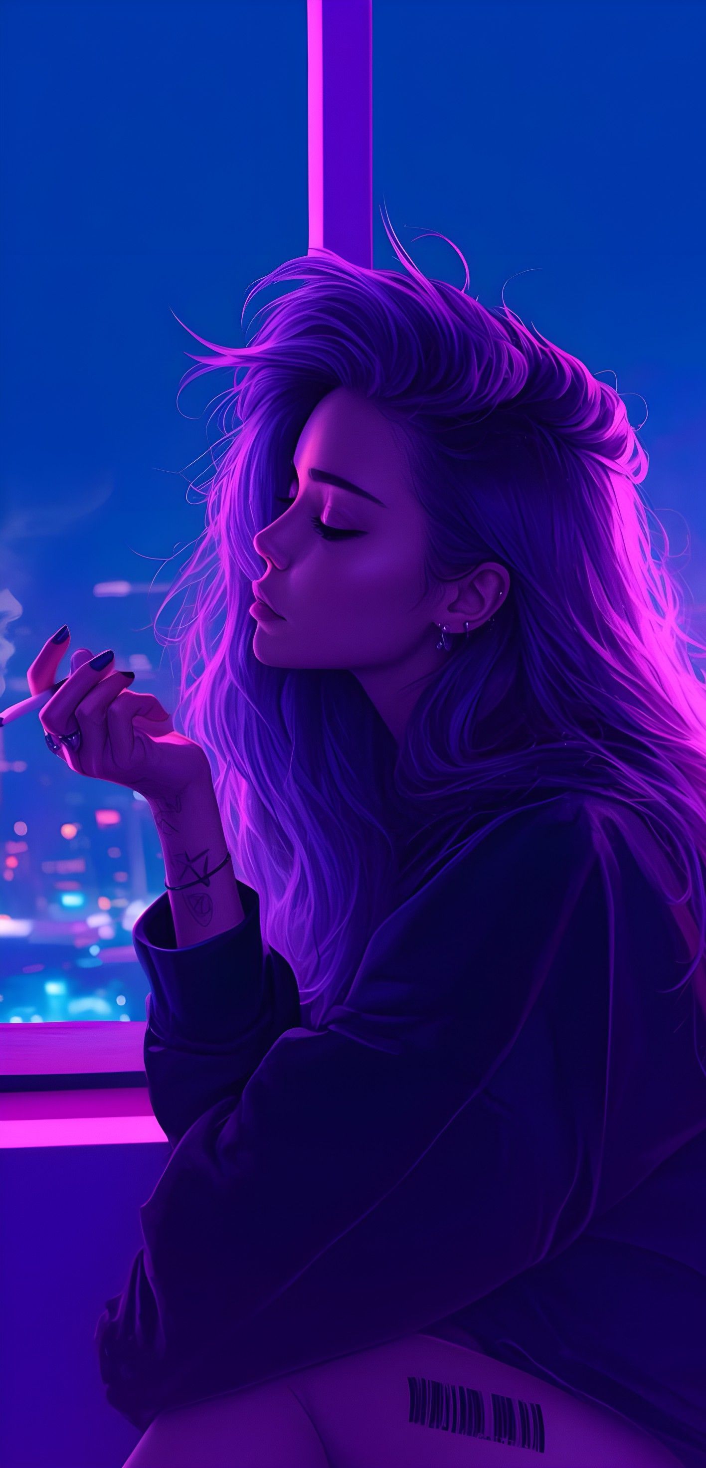 High-quality cyberpunk mobile wallpaper: neon cyberpunk girl portrait. Perfect for your smartphone screen. Download Wallpapers