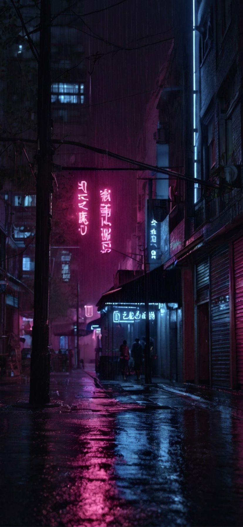 High-quality cyberpunk mobile wallpaper: neon cyberpunk purple cityscape. Perfect for your smartphone screen. Download Wallpapers