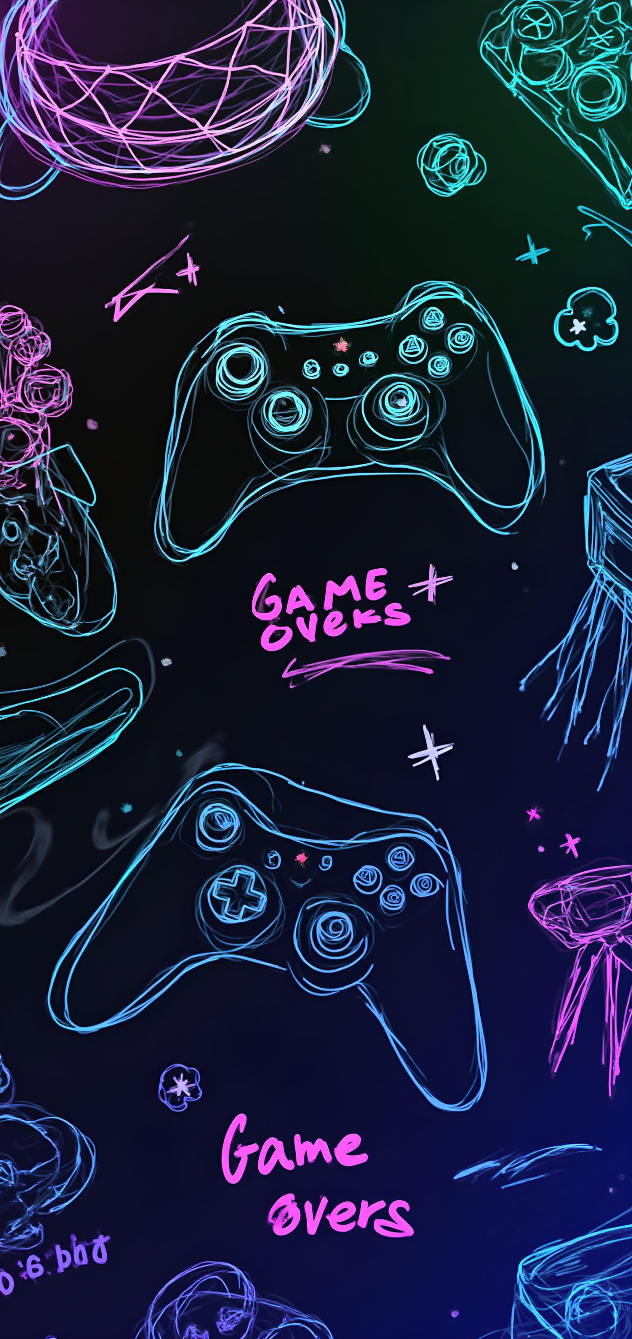 High-quality gaming mobile wallpaper: neon game controllers and jellyfish design. Perfect for your smartphone screen. Download Wallpapers