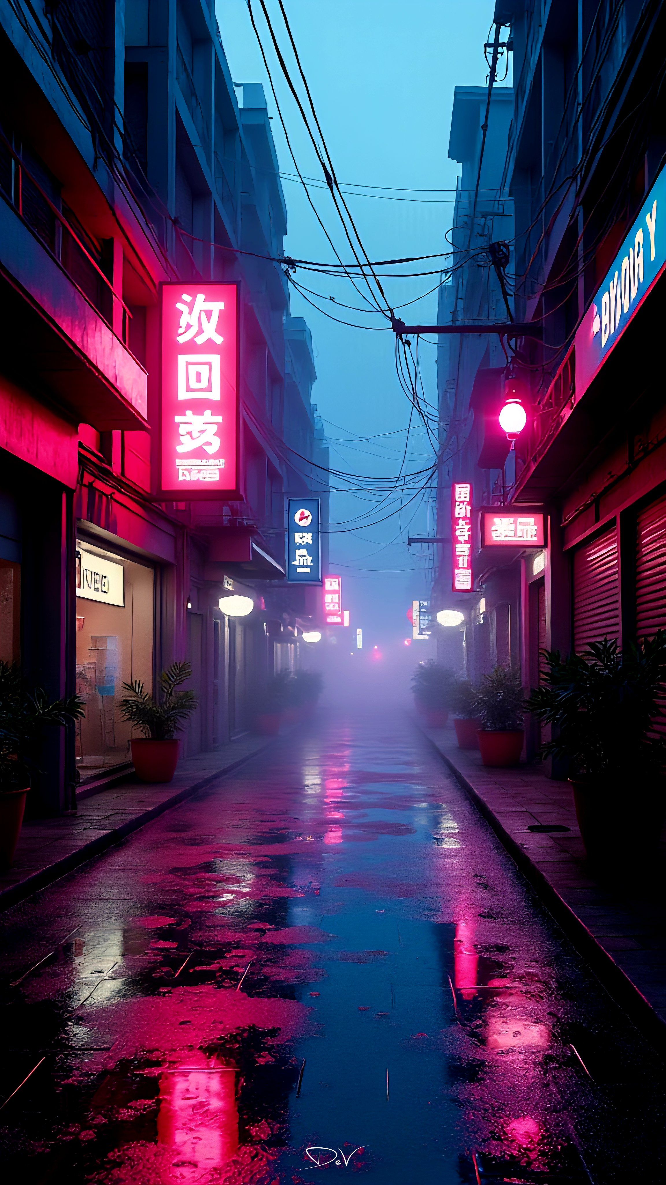 High-quality cyberpunk mobile wallpaper: neon-lit rainy urban nightscape. Perfect for your smartphone screen. Download Wallpapers