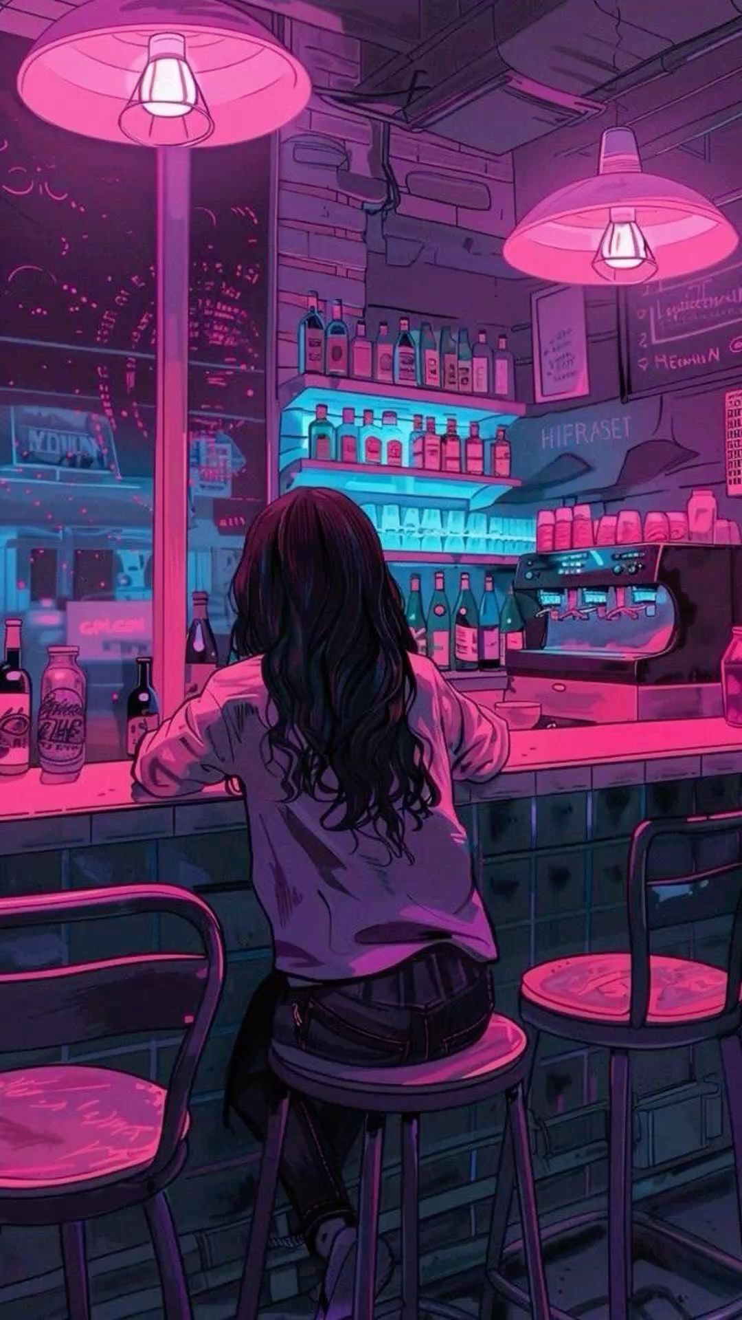 High-quality cyberpunk mobile wallpaper: neon noir bar scene. Perfect for your smartphone screen. Download Wallpapers