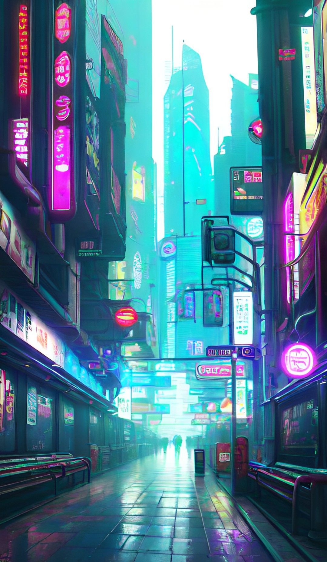 High-quality cyberpunk mobile wallpaper: neon skyline cyberpunk art. Perfect for your smartphone screen. Download Wallpapers