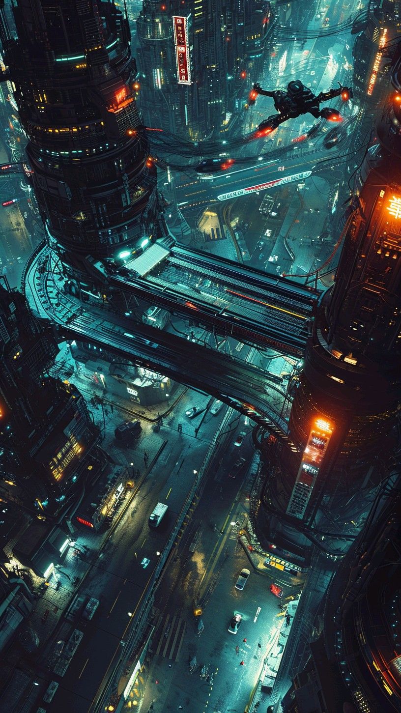 High-quality cyberpunk mobile wallpaper: neon skyline cyberpunk cityscape. Perfect for your smartphone screen. Download Wallpapers