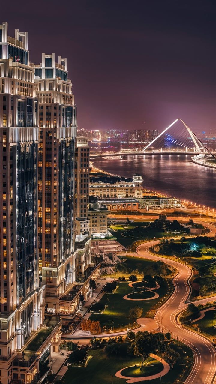 High-quality cyberpunk mobile wallpaper: neon skyline over bay bridge. Perfect for your smartphone screen. Download Wallpapers