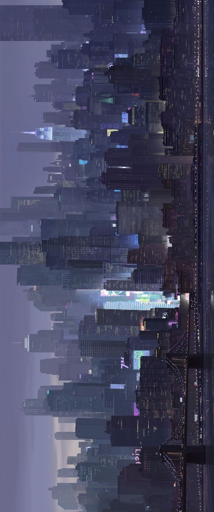 High-quality cyberpunk mobile wallpaper: neon skyline reflected in water. Perfect for your smartphone screen. Download Wallpapers