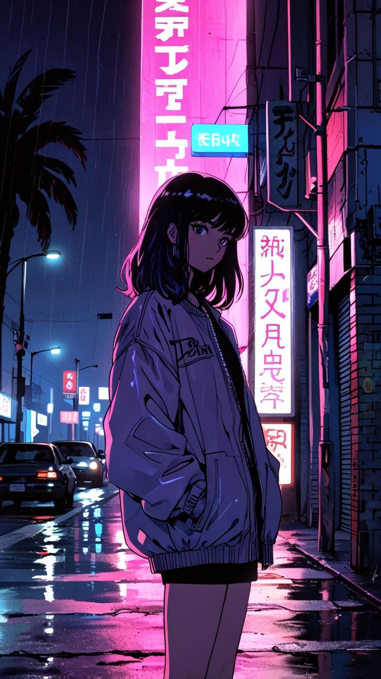 Neon Umbrella in Cyber Rain Download Wallpapers