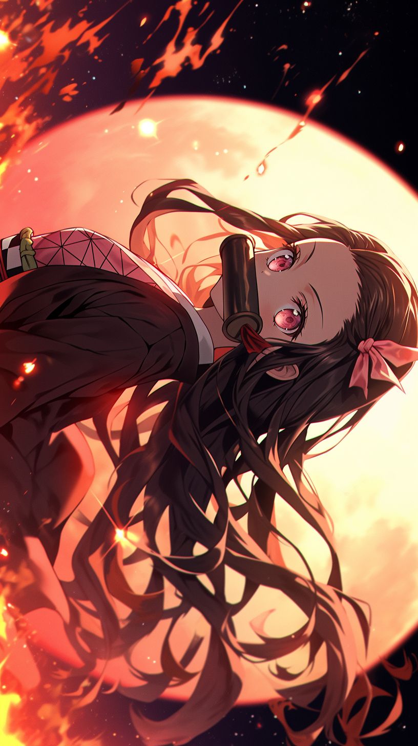 High-quality anime mobile wallpaper: nezuko kamado cherry blossom scene. Perfect for your smartphone screen. Download Wallpapers