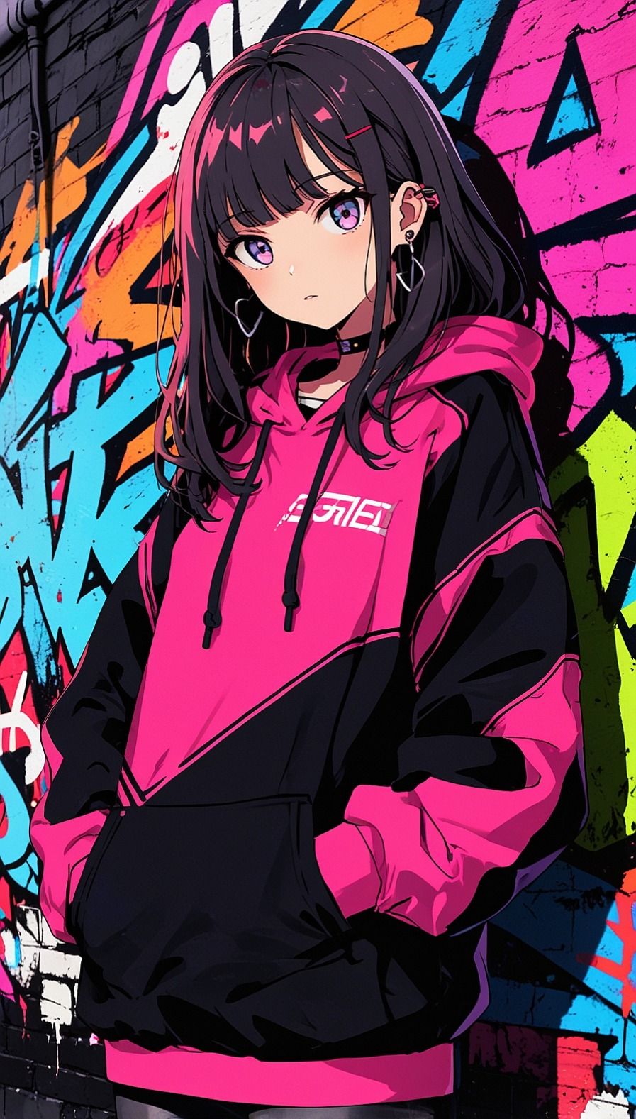 High-quality anime mobile wallpaper: pink hoodie anime girl art. Perfect for your smartphone screen. Download Wallpapers
