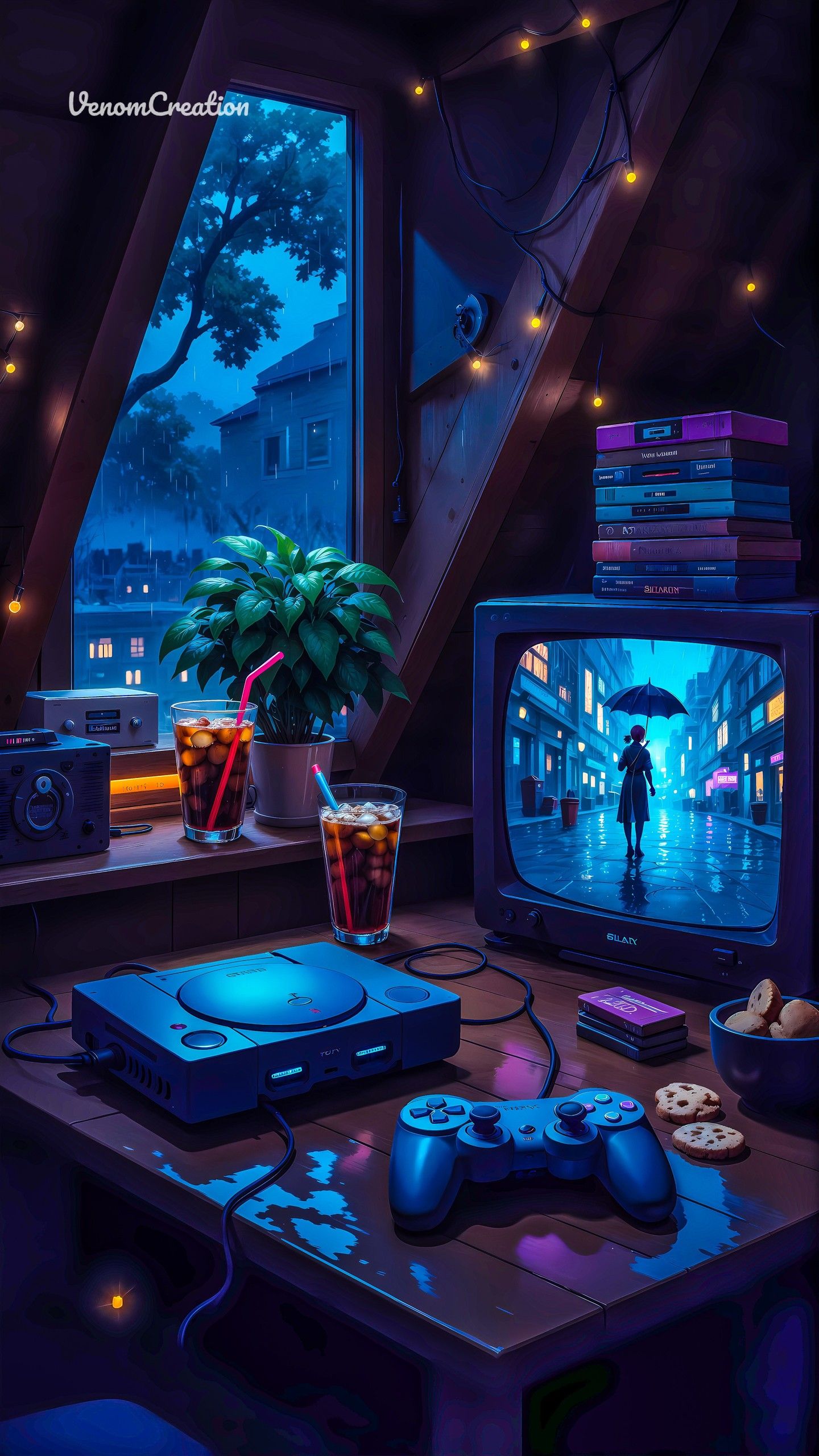 High-quality gaming mobile wallpaper: retro gaming setup desktop scene. Perfect for your smartphone screen. Download Wallpapers