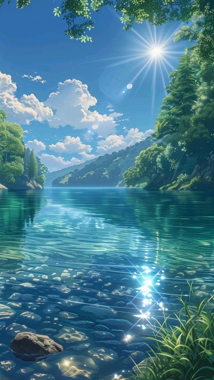 High-quality anime mobile wallpaper: serene river landscape anime. Perfect for your smartphone screen. Download Wallpapers