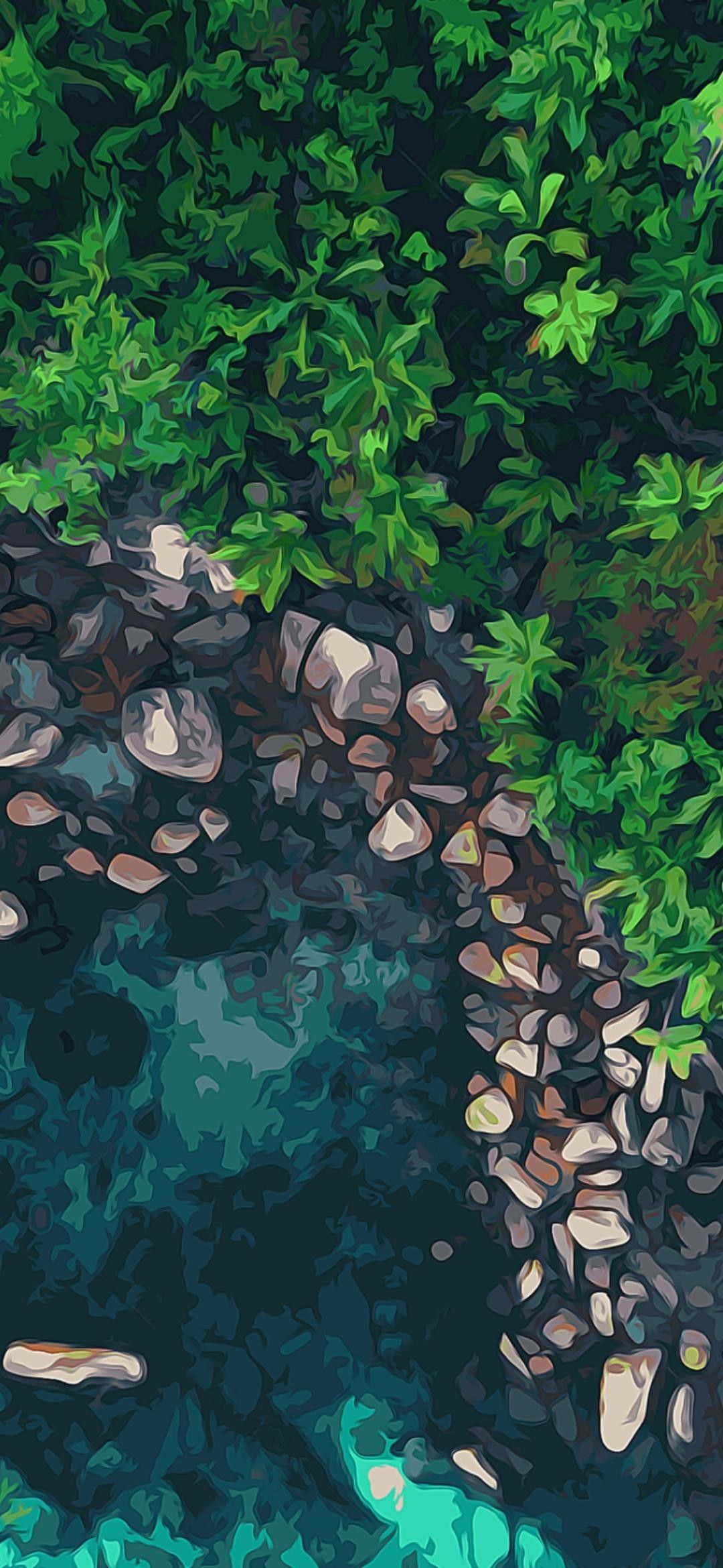 High-quality minimalist mobile wallpaper: serene stream with leafy edges. Perfect for your smartphone screen. Download Wallpapers
