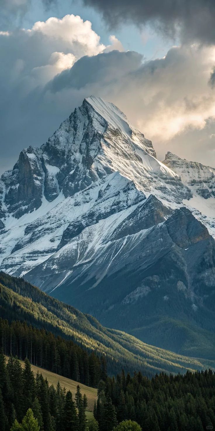 High-quality nature mobile wallpaper: snowy peaks and pine forest. Perfect for your smartphone screen. Download Wallpapers