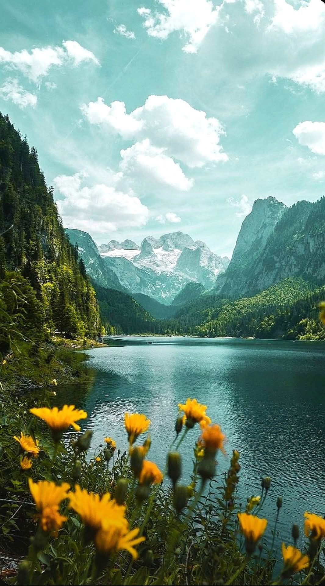 High-quality nature mobile wallpaper: sunlit blooms and mountain peaks. Perfect for your smartphone screen. Download Wallpapers
