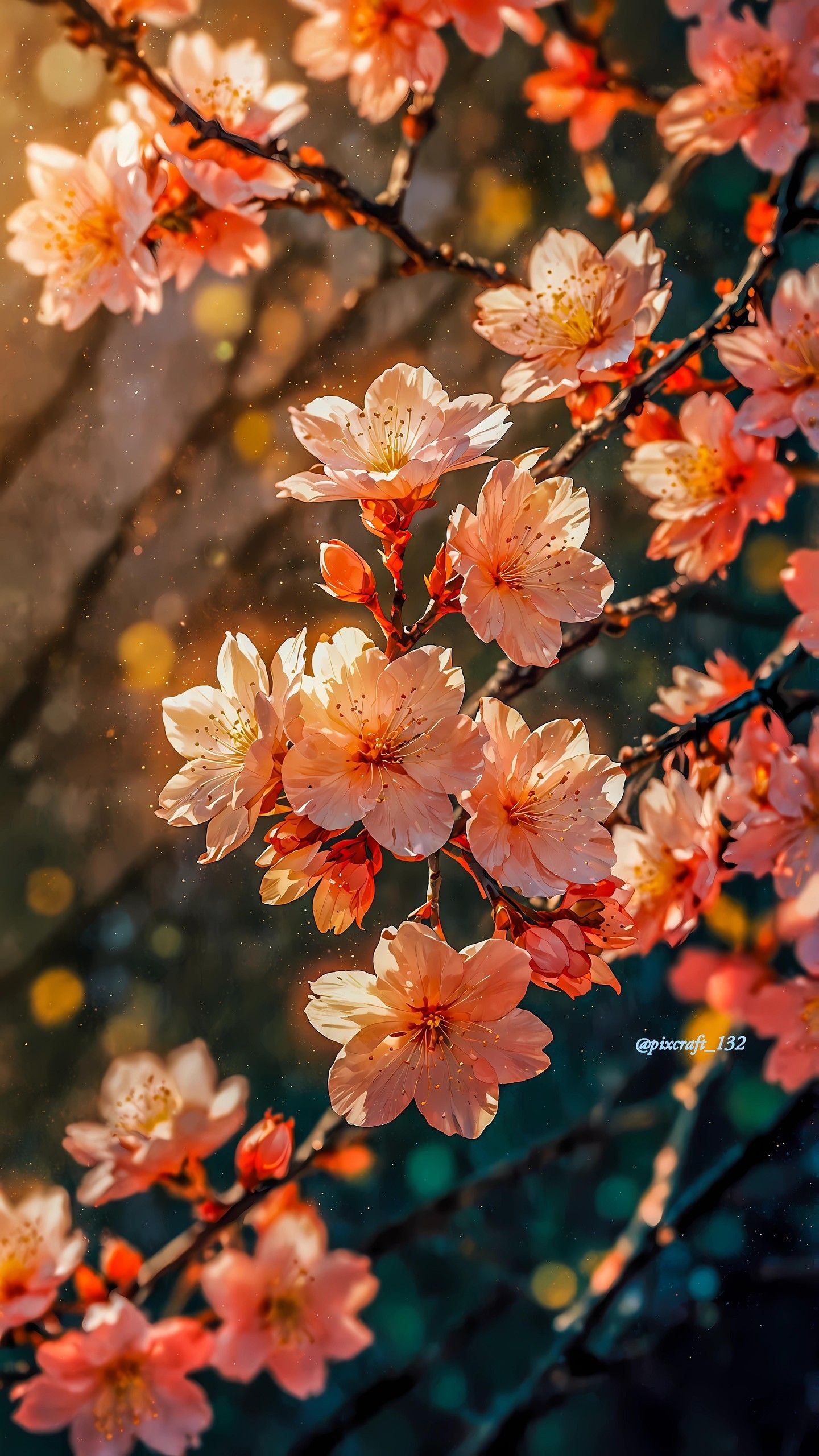 High-quality nature mobile wallpaper: sunlit pink blossoms on branch. Perfect for your smartphone screen. Download Wallpapers