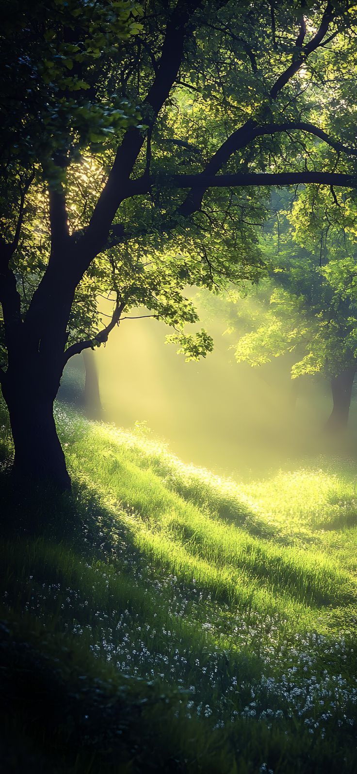 High-quality minimalist mobile wallpaper: sunlit trees minimal design. Perfect for your smartphone screen. Download Wallpapers