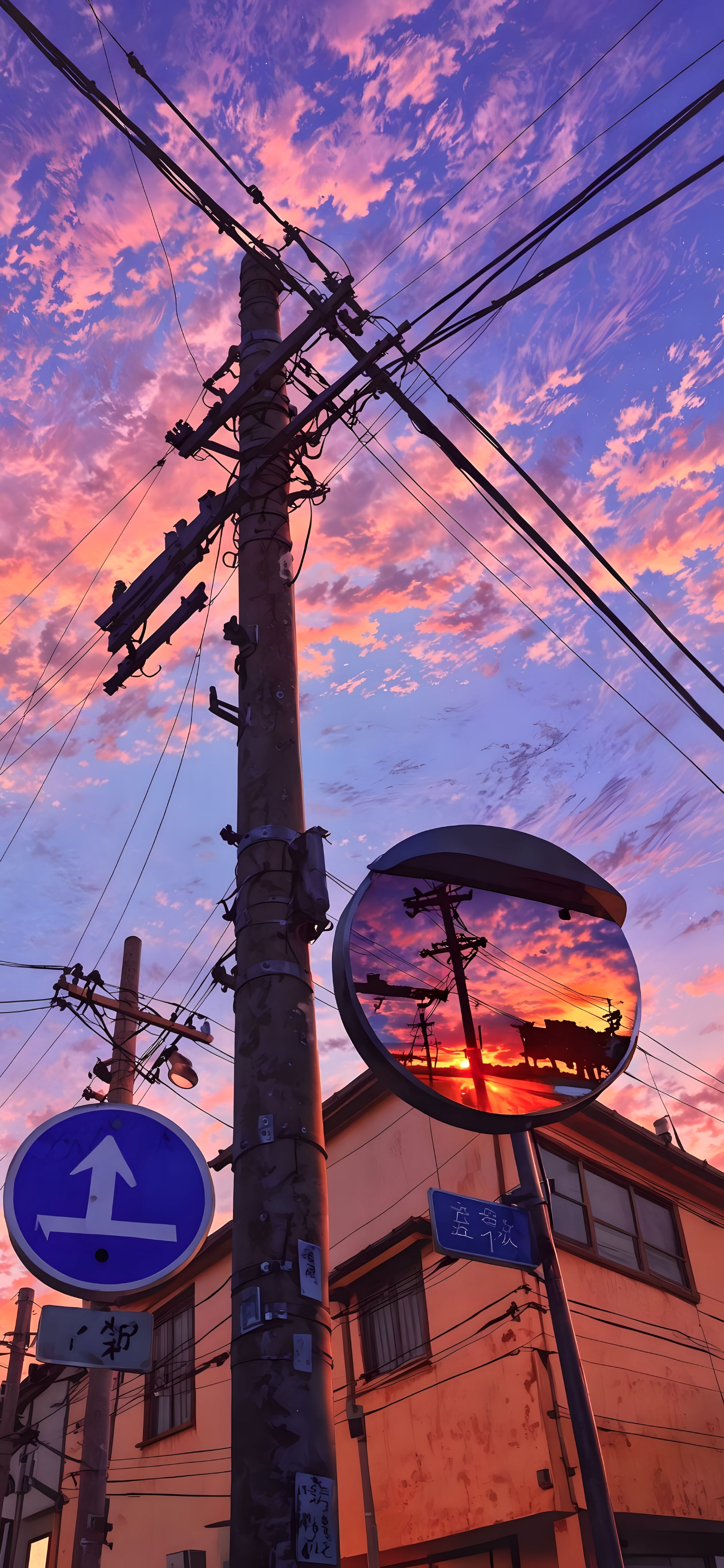 High-quality anime mobile wallpaper: vibrant anime sky street sign. Perfect for your smartphone screen. Download Wallpapers