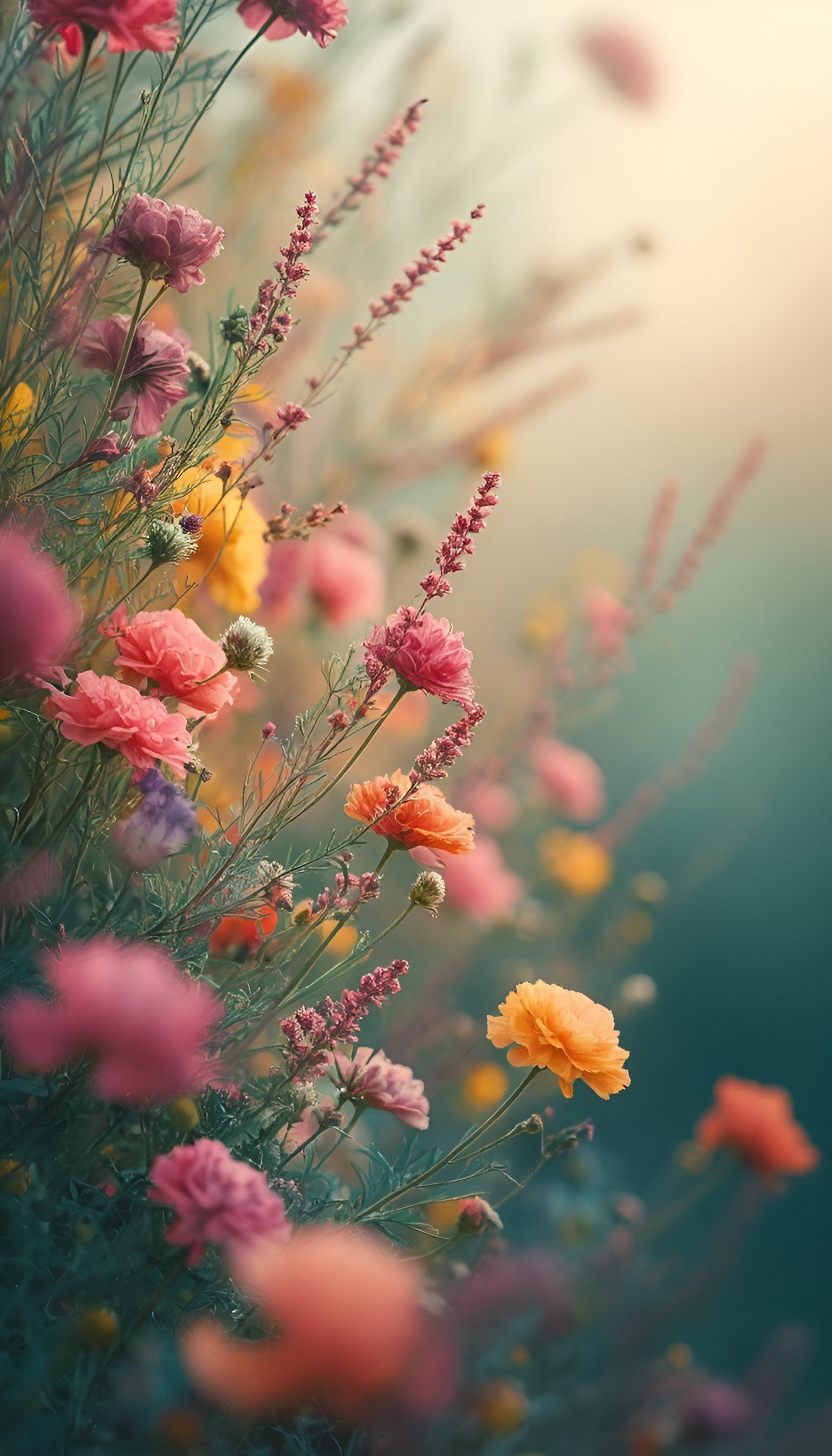 High-quality nature mobile wallpaper: vibrant wildflowers in green meadow. Perfect for your smartphone screen. Download Wallpapers