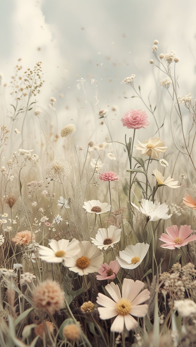 High-quality nature mobile wallpaper: wildflower field under clouds. Perfect for your smartphone screen. Download Wallpapers